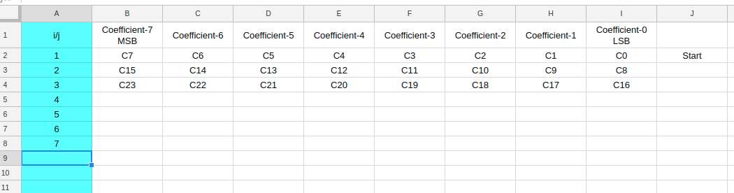 C1-C23表示14位系数。 我用这个演示了我试图组织这些系数的方式。