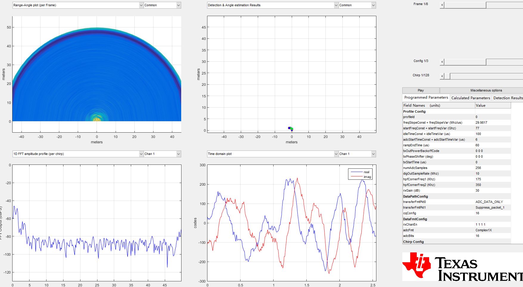 目前、我使用 IWR1443和 DCA1000获取原始数据。 我希望从原始数据中获得水平和垂直方向的热图、因此 IWR1443 必须开启所有3TX 和4RX 天线。