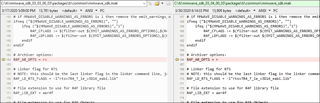 从上面的快照中、不清楚是否确实存在错误、因为在这两种情况下都会生成以下 traceis、 并且在 SDK 3.4情况下也会返回 windows 命令提示符。 只有“符号定义...” 对于 SDK 3.4、未生成日志、但这可能是由于用于调用归档器的不同选项所致。