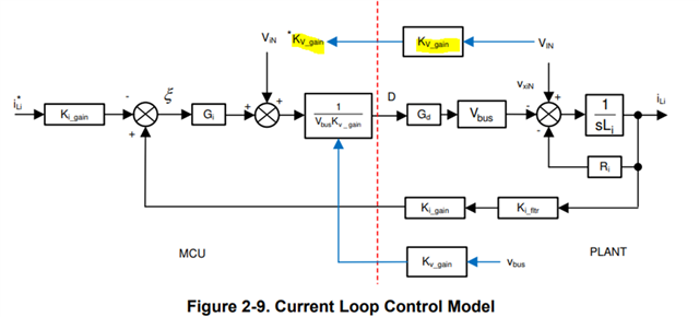 简而言之、添加交流电压项背后的原因是提供前馈以补偿交流输入电压的任何变化。 然后、将这两者的总和除以直流母线前馈项、以适应负载变化引起的 VBUS 突然变化。 这简化了内部电流环路、可使用简单的 PI 控制器进行补偿。 换言之、我们将这些"原因"项本身包含在反馈环路中、以便更快地响应误差校正、而不是仅仅依靠由 VAC 或 VBUS 侧变化(原因)导致的传统电感器电流变化(效应)。