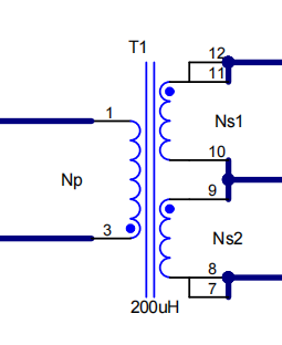 一般而言、对于初级绕组和次级绕组、半桥 LLC 转换器中变压器的虚线端子(极性标记)通常是相同的。 但是、在这种特定设计中、LLC 转换器中的变压器 T1 在初级侧和次级侧之间具有相反的虚线端子配置、类似于反激式转换器中的变压器设置。 如图所示、第一个图展示了传统的半桥 LLC 变压器、而第二个图展示了此解决方案中使用的变压器 T1。 我无法理解这一差异、希望得到解释。