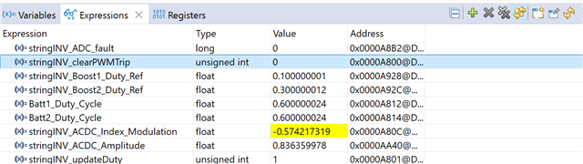 我能否询问“stringINV_Boost1_PWM",“,"stringINV_Boost2_PWM"、"stringINV_Boost2_PWM",“,"BATT1_PWM"“"BATT1_PWM"<xmt-block2>、 Duty_Cycle“ Duty_Cycle“ 和“BATT2_PWM"的“的 Duty_Cycle 值是多少、以及您在 Duty_Ref、Duty_Ref 和双向引脚上看到的 PWM 信号是什么? 您是否也会为直流/交流引脚看到这种情况? 探头接地是否良好?