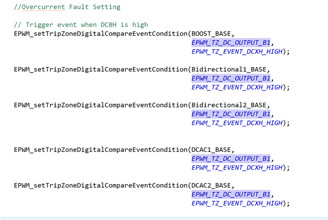 我正在 使用 TMS320F280039C LaunchPad 运行 TIDA-010938 参考设计。 我目前正在进行实验 1、只能获得升压 1 和升压 2(引脚 53 和 55)的 PWM。 我已经评论了里面的一切  stringINV_INT( Fault_Read )  stringINV.h 文件中的此函数、如前面的文章中所述。 奇怪的是、我在双向 1 侧和 2 侧(引脚 57、59、61、63)获得了低信号 PWM(与升压相同)、即使 BATT1/2 的占空比不同也是如此。 升压 PWM 产生的噪声似乎很大。