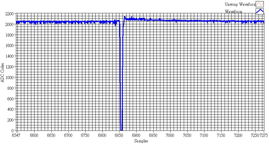 这是我的信号输入、电压为1V。 转换值为2099个代码、转换电压为1.025V。