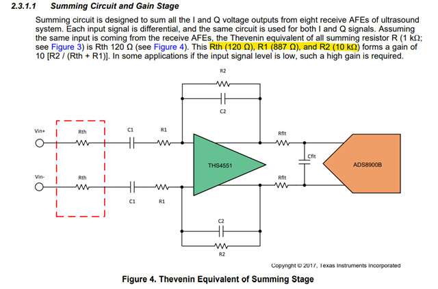 根据 THS4551的数据表、建议 RF 使用1k Ω。 此外、与 THS4551配合使用的 EVM 和参考设计应用的电阻为1k Ω、TIDA-01351除外。