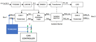 客户 正在研究实施隔离式 CAN 总线中继器、如此处所述: https://www.ti.com/tool/TIDA-01487#applications