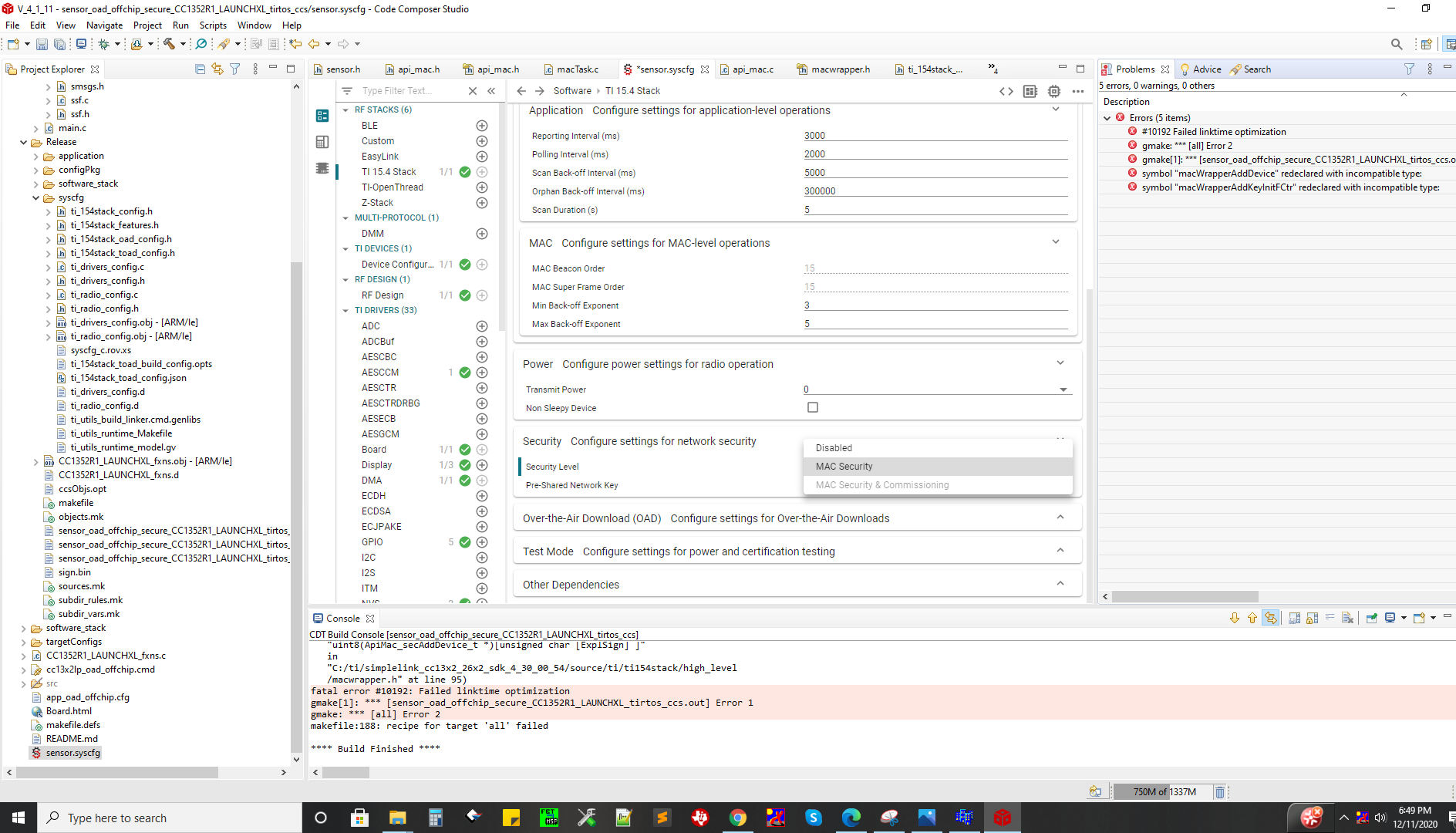 <Linking> error: symbol "macWrapperAddKeyInitFCtr"redeclared with incompatible type: "uint8(ApiMac_secAddKeyInitFrameCounter_t *)[unsigned char [ExplSign] ]" in"../Application/MAC/HighLevel/mac_hl_patch.c"at line 1156 and: "uint8(ApiMac_secAddKeyInitFrameCounter_t *)[unsigned char [ExplSign] ]" in ".../ti154stack/high_level/macwrapper.h" at line 185) error: symbol "macWrapperAddDevice"redeclared with incompatible typ: "uint8(ApiMac_secAddDevice_t *)[unsigned char [ExplSign] ]" in"../Application/MAC/HighLevel/mac_hl_patch.c"at line 1460 and: "uint8(ApiMac_secAddDevice_t *)[unsigned char [ExplSign] ]" in ".../ti154stack/high_level/macwrapper.h" at line 95) |