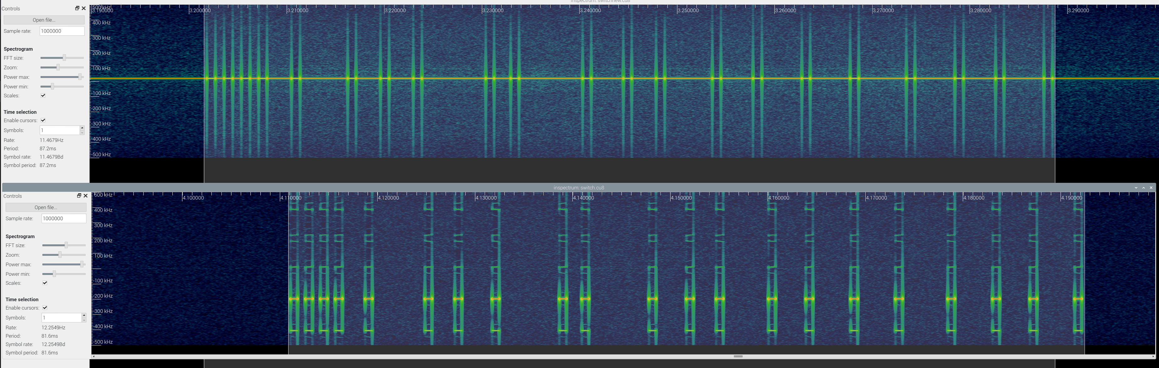 我正在尝试为门铃重新创建信号。 为此、我认为我需要使用异步模式、并且已经取得了一些进展。 但是、我在努力使输出持续接通/保持高电平。 然后、当我实际广播数据时、它会变为低电平。 现在、我可以反转这个区域中的逻辑、不过、从屏幕截图中可以看到、即使我停止传输、信号也会保持不变。 我需要什么来纠正这种情况。