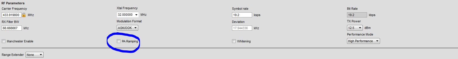 这看起来与 CC112x 如何进行 PA 升降有关。 当 PA 被打开时、不管是否将第一个符号设置为逻辑'1'、它看起来就像芯片。 我找不到关闭它的方法。 由于这比实际数据包的时间要提前一点、您是否能够在 RX 中抑制这一额外的"1"?