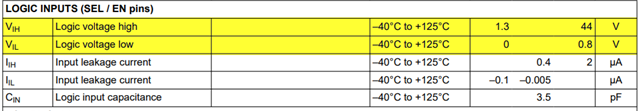 有关 SELx 的 VIH/VIL、请参阅数据表: