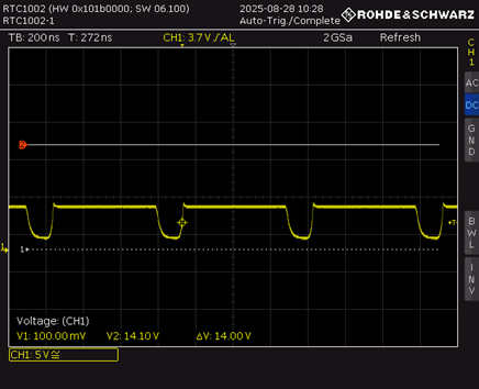 电容器 (C54) 的影响: 更改了电容器并执行了相同的测试 (22uF)、不仅检查系统中涉及的行为和电流、还检查 16V 信号开关的波形、并得出结论:电容器对温度变化时的不良行为没有影响。