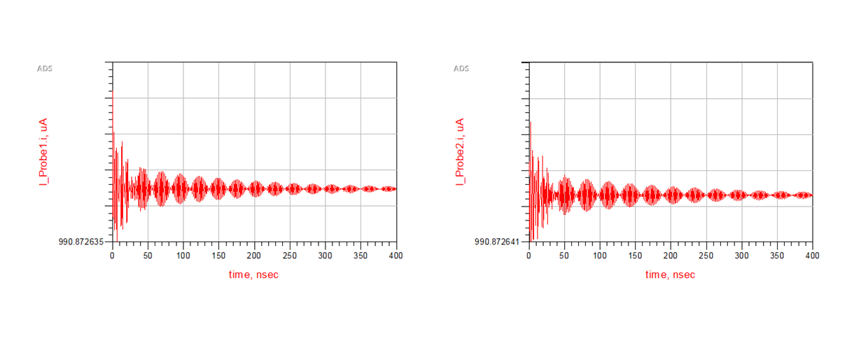 电流图上有尖峰-但如果您在左侧看到、这是一个奇异值、因为这是一个直流测试(1000欧姆负载电阻器和使用3.3V 模型的1V 输入)。