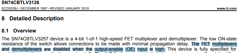 https://e2e.ti.com/support/switches-multiplexers-group/switches-multiplexers/f/switches-multiplexers-forum/886305/sn74cbtlv3126-oe-pin-question