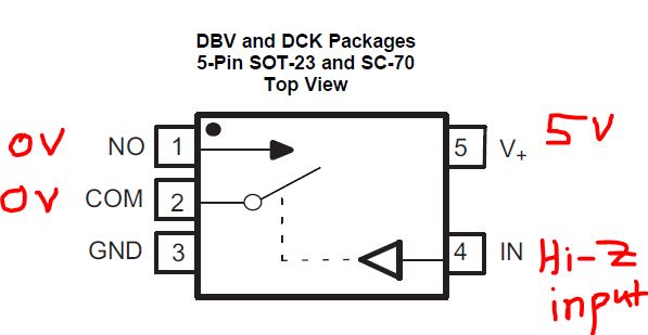 TS5A3166上的输入引脚是否测量将 IC 供电至+5VDC 时的任何电压? 实际上、我在上电时测量的电压大约为2.3Vdc。
