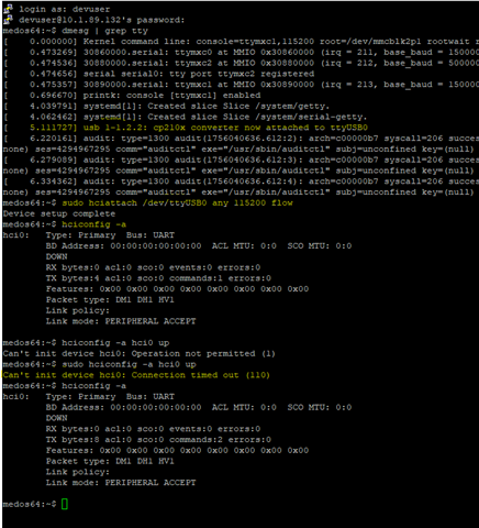 - 驱动程序需要器件树中有相应的节点、并在枚举期间从该节点检索配置详细信息。 但是、由于 USB 转 UART 串行端口是动态分配的、因此无法在设备树中预配置该端口。 因此、在当前实现中、蓝牙控制器和主机控制器之间不会发生绑定。