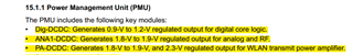 在上图中、有人提到片上电源转换器子系统(PMU)所需的外部电感器:DIG-DCDC、ANA1-DCDC、PA-DCDC。