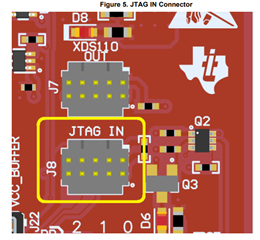 如上图所示、使用外部 XDS110时、有两个端口(JTAG 和辅助 UART 端口)。