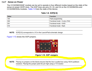 我们应该使用什么 SOP 引脚配置? 根据产品线指南、我们应该将(1 0 0)用于 UARTLOAD、或将(0 1 0)用于 UARTLOAD_FUNCTIONAL_4WJ。 哪一个很重要?