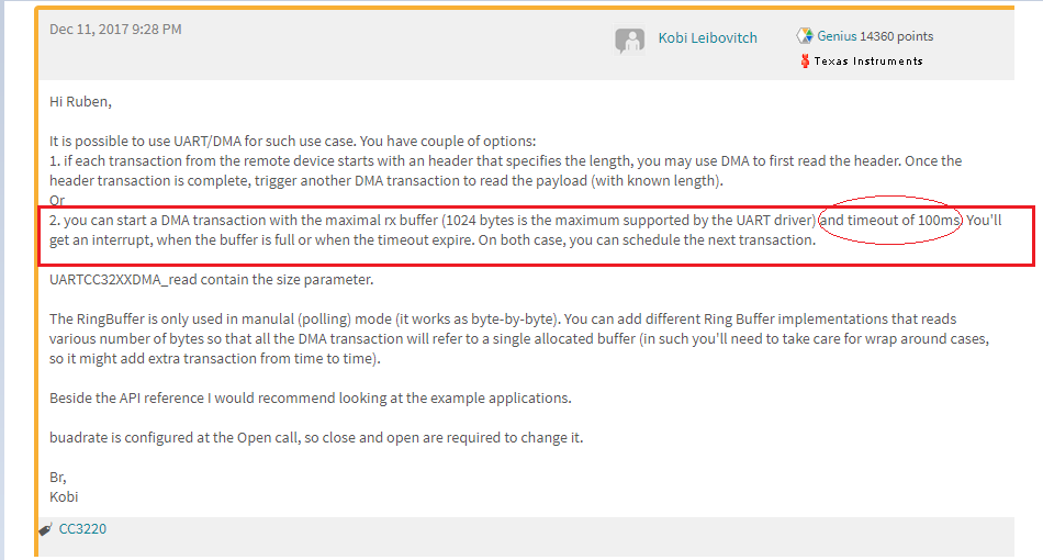 我使用 CC3220的 UART 来发送和接收数据、我遇到了一个问题:如何接收长度不同的数据