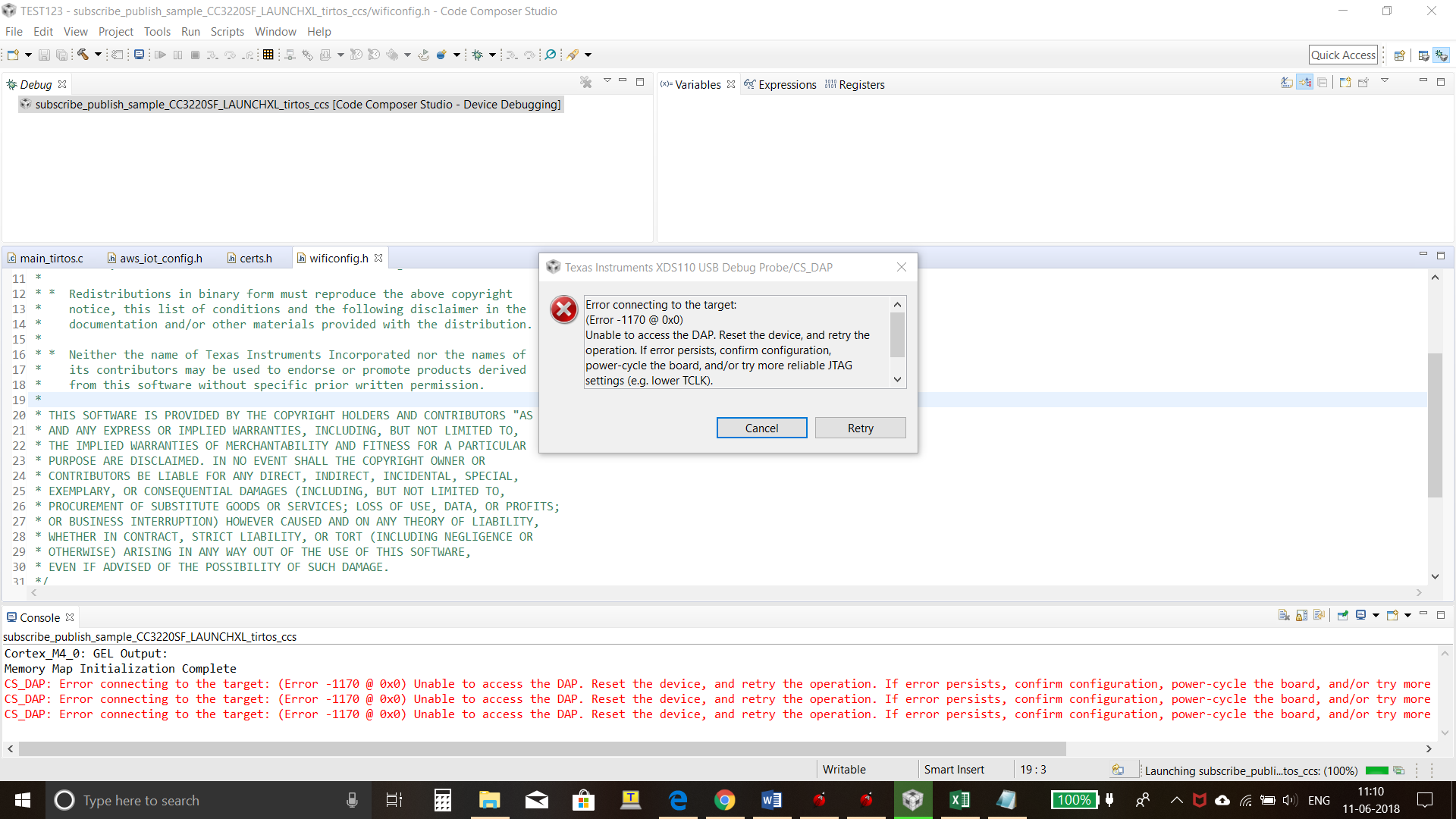[参考译文] CCS/CC3220SF-LAUNCHXL:无法调试 CC3220SF-LAUNCHXL