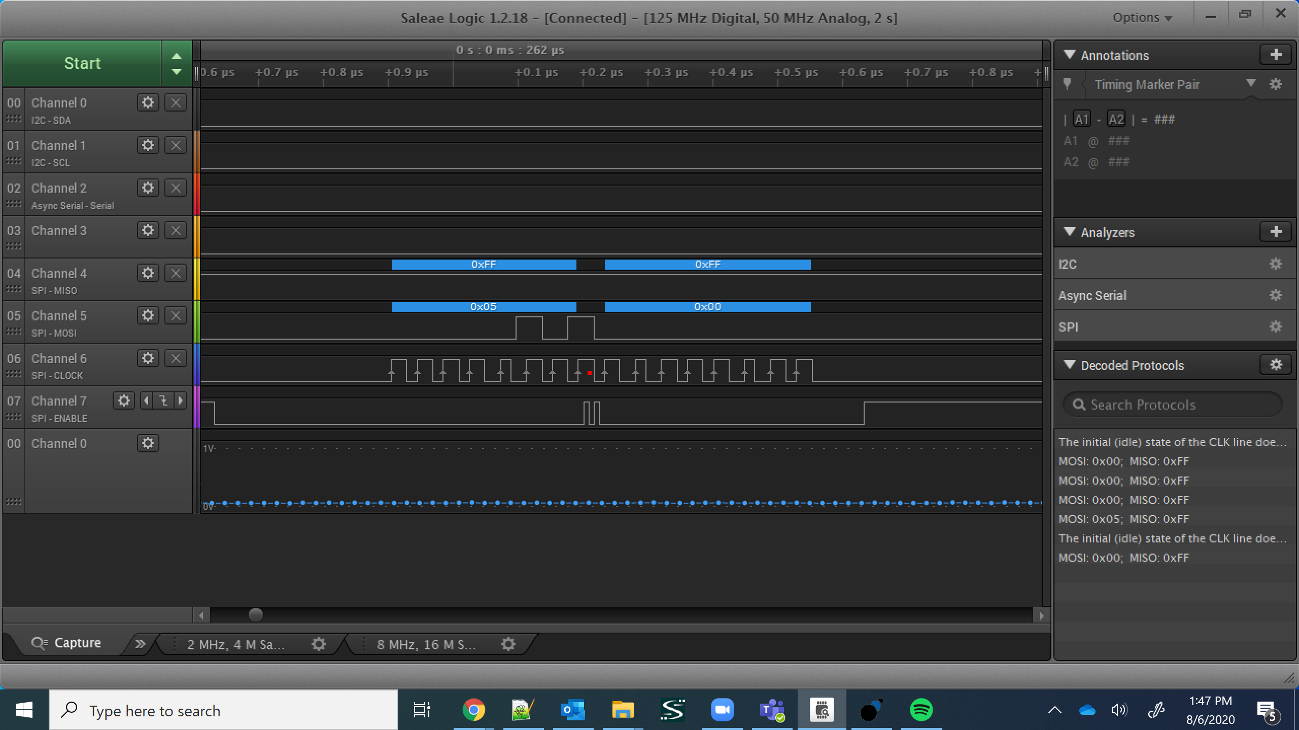 我使用 Saleae 检查了 SPI 线路、看起来交易不正确。 有两个事务彼此间略有不同。 其中包括: