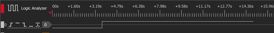 这些配置与我用于日志记录代码示例的配置相同。 我通过获取逻辑分析仪以查看启动期间的引脚行为、但您可以看到、它只是被拉高、即使代码正在向日志写入一些数据、也不会发送任何数据。