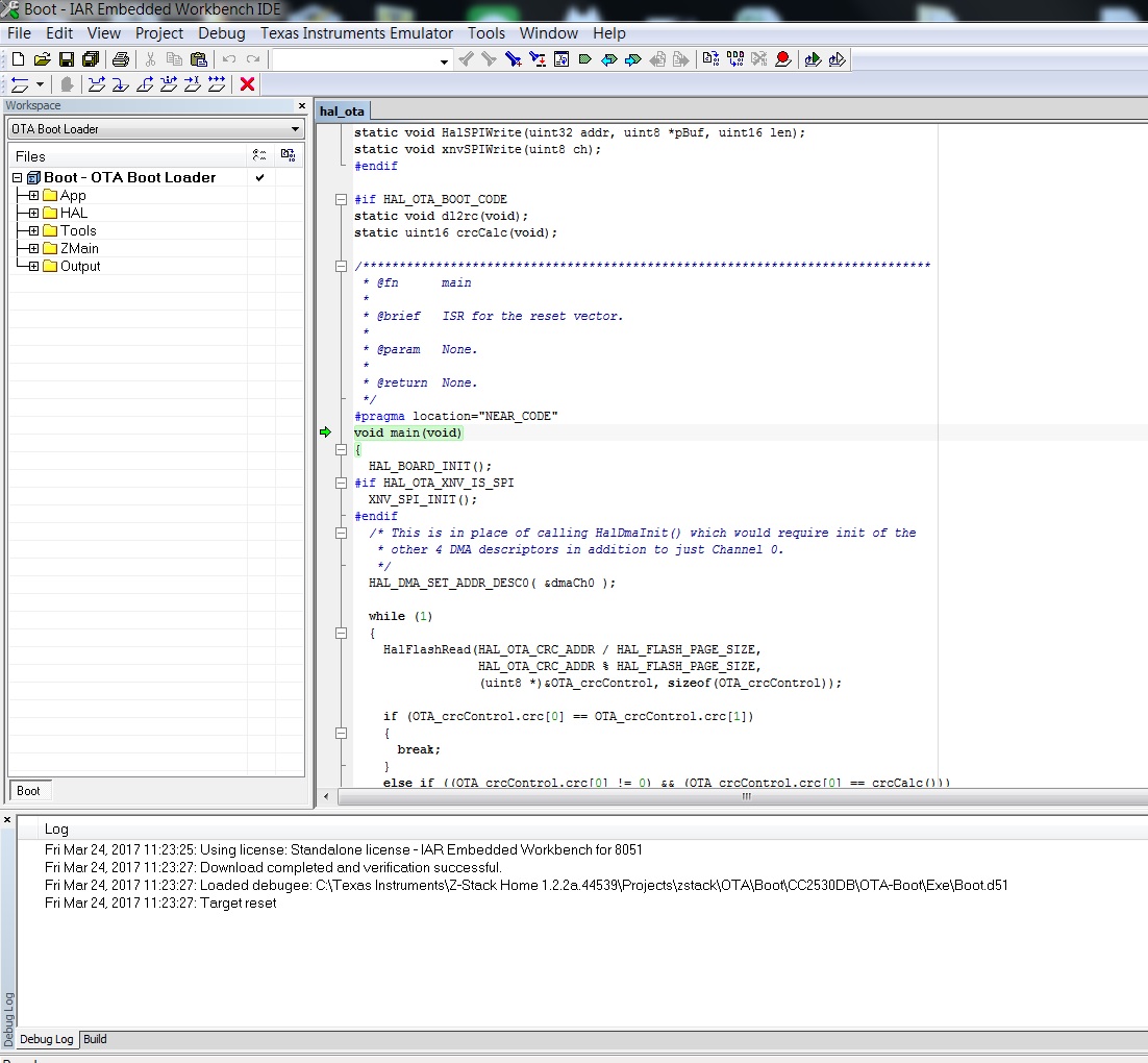 OTA引导项目在Z-Stack Home 1.2 .2a中是相同的,我附加了我的boot.bin。