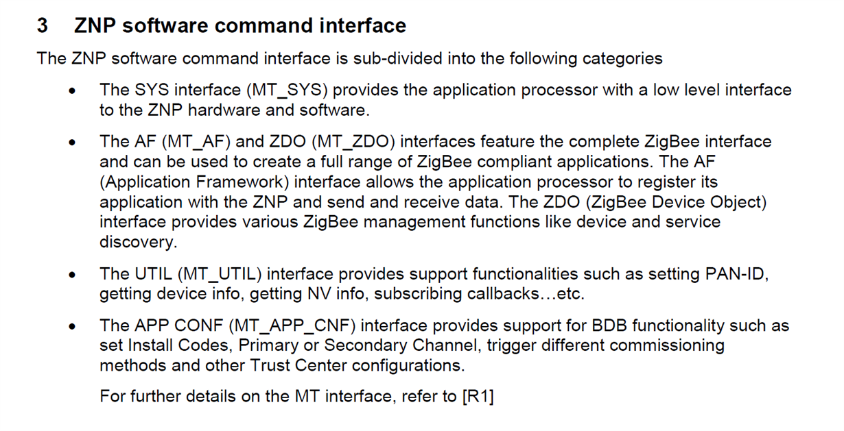 2.如“ZigBee-Pro网络处理器SWRA442”中所述,ZNP提供了以下 软件命令接口: