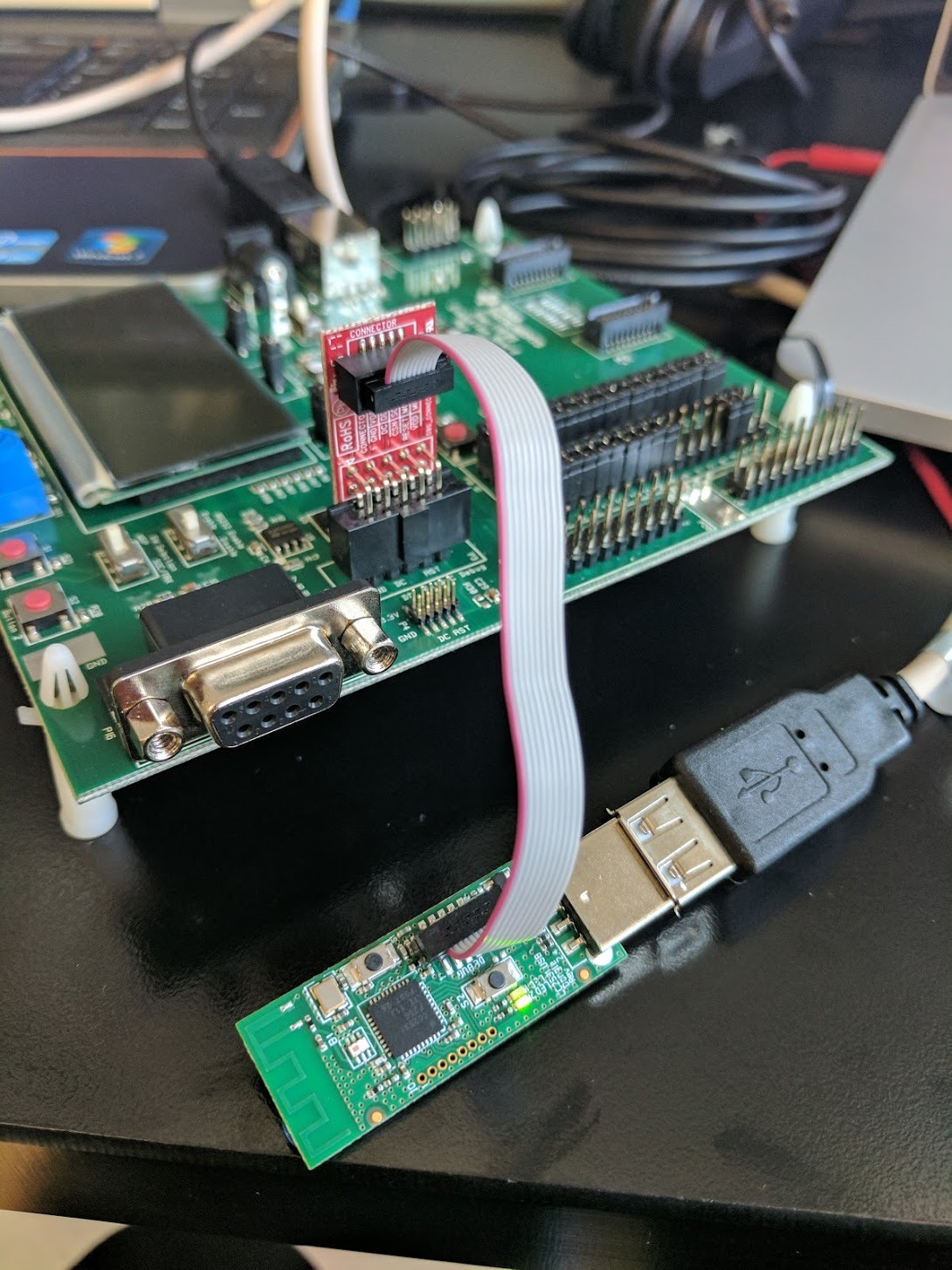 - 将CC2531 USB加密狗连接到USB端口。 我使用了TI开发套件中包含的包容式对插入式电缆