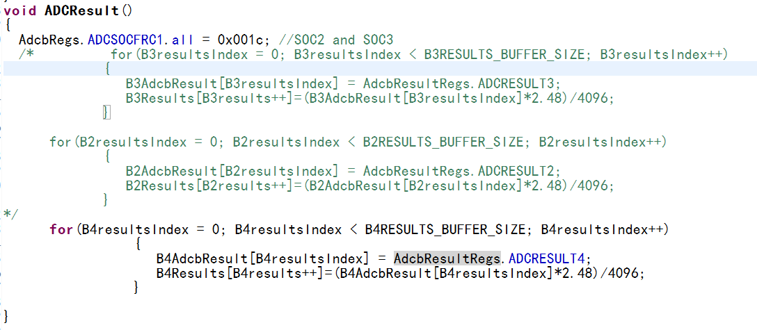这是AD采样的初始化及显示   我只让一个AD通道采集   但是却有两个通道有采集到数据 。但是B2采集的时候就可以单独采集。其他好像都不可以样。为什么呢?