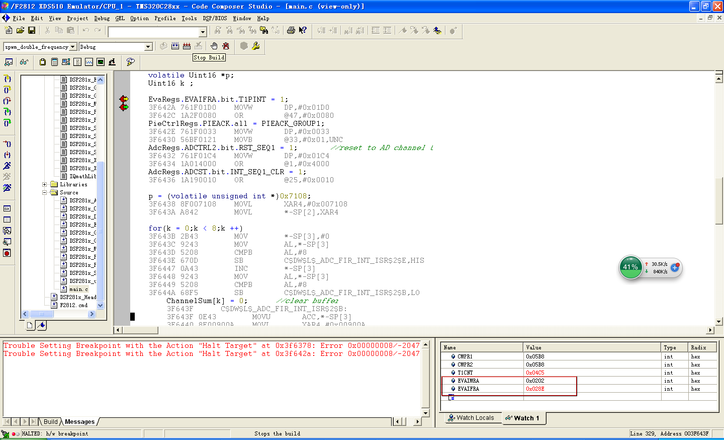 执行后,整个EVAIFRA都被复位,导致其他ISR服务程序不能响应。