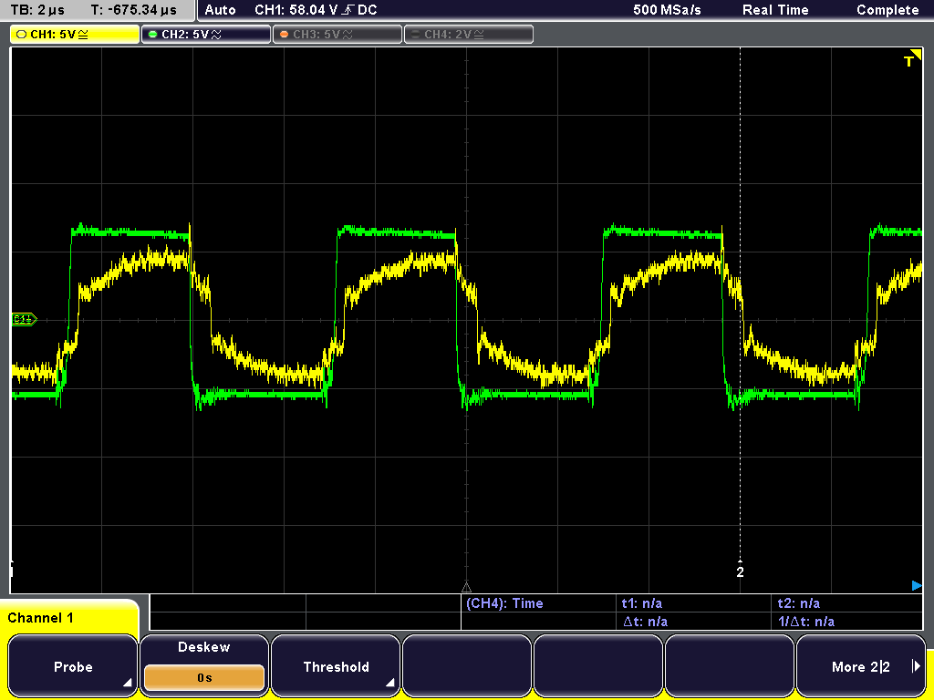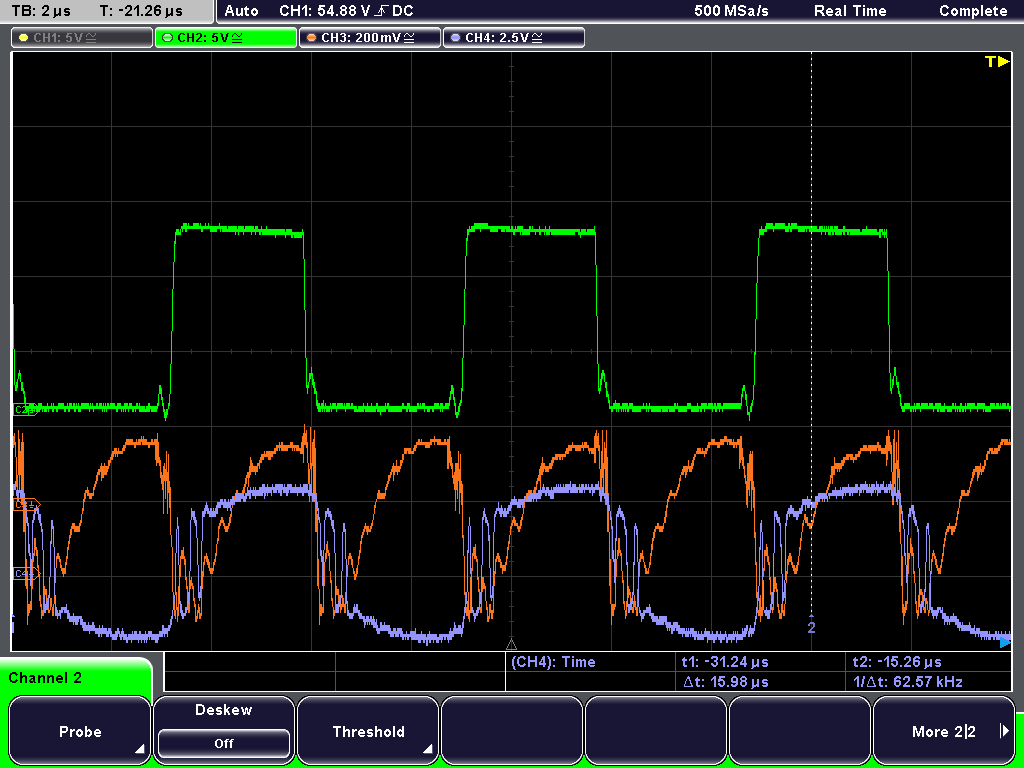 2.如图2所示,我将探头夹在T2的1和6端,测出波形如图2所示,请问这是谐振电流的波形吗?