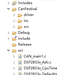 我也想过这个问题,我另建一个工程后自写了一个简单的加法函数,定义放在C文件中声明放在H文件中然后在main文件中调用,运行的结果可以的。但我把这个简单函数放到遇到问题的这个工程中,一样分别的那两个对应的C和H中定义和声明,但是在main中调用就又不行了。这里scr是28335的文件,Canfestival的文件是另外复制黏贴后再添加到这个工程里面来的。现在我把这个Canfestival中的所有文件都放到scr里面,还是不能解决问题。