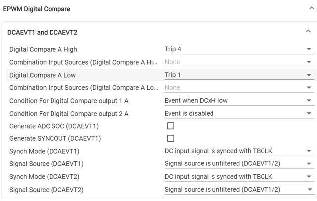 我由外部引脚检测保护信号低电平时,设定DCAEVT1 时间将PWM引脚拉低,但在外部引脚由低恢复到高电平,PWM居然又重新开始发波了。