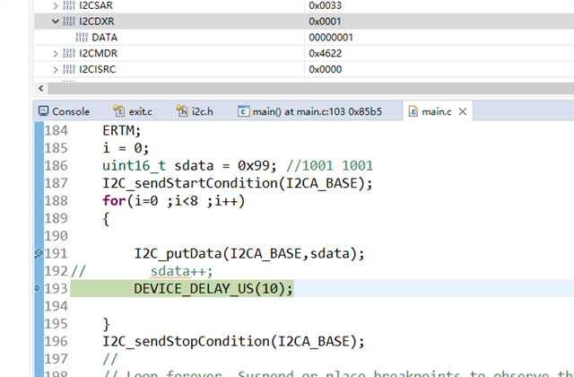 不清楚在for循环的哪个迭代中有断点,是第一个实例吗?由于每次只发送2位,可以尝试屏蔽sdata以删除未使用的位,然后再次尝试将数据放入发送缓冲区,再次查看所看到的内容。