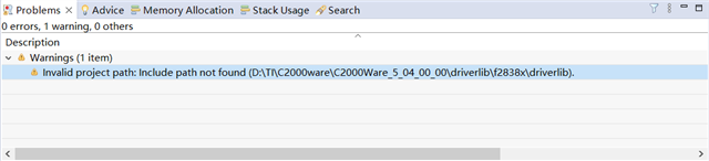 但是软件仍然有警告:Invalid project path: Include path not found (D:\TI\C2000ware\C2000Ware_5_04_00_00\driverlib\f2838x\driverlib).