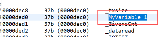 编译之后,在.map文件中,搜索这两个变量分配到的存储空间,结果只找到MyVariable_1这个变量,定义的MyVariable_0[10]数组,没有找到,可见还是被编译器优化掉了。