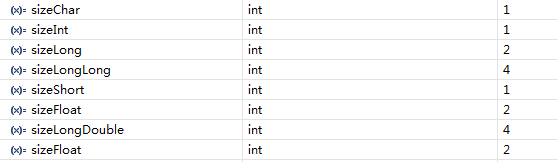 int sizeChar,sizeShort,sizeInt,sizeLong,sizeLongLong,sizeLongDouble,sizeFloat;