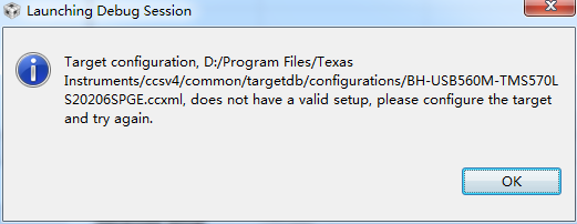 launch Ti Debugger 时出现错误 Target Configuration配置错误