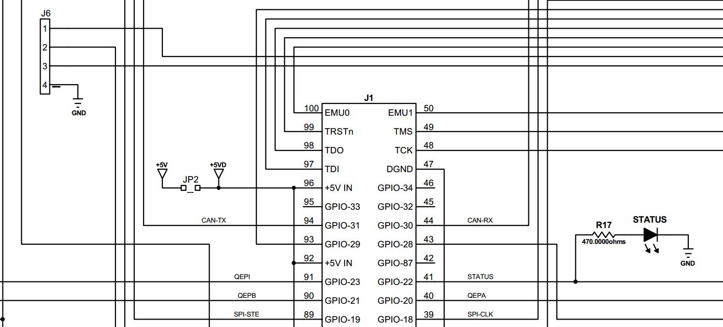 图中+5V和+5VD是几个意思???这个短路帽不是必须得连起来嘛,干嘛不直接接上,这个两个网络标号也没有什么实际意义啊,考虑到+5VD同时还连接了霍尔传感器和QEP接口,不应该用个隔离的电源处理一下吗?
