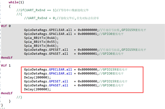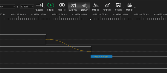 如题,电路设计中将GPIO159设置外部SPI接口的EEPROM器件的片选端,由软件手动控制该IO口,读写存储器期间,发现片选端已事先手动拉低到低电平,但逻辑分析仪扫描SPI接口所有信号,发现时间上是先出现的SPI的时钟和数据信号,片选信号居然延迟了一段时间才被实际拉低;不仅如此,在SPI接口数据发送完毕后,代码上是立刻将片选信号再次拉高,结果发现GPIO159在延迟了很长时间后才真正置为了高电平,代码和逻辑分析仪截图如下: