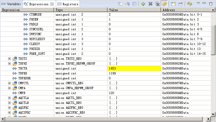 出现了诡异的现象,调试ePWM模块时TBCTR中的值居然超过了TBPRD的值!!!!!