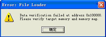 “Data verification failed at address 0x100000.Please verify target memory and memory map ”