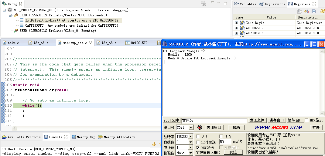 把例子程序放到RTOS的工程里,串口打印出来的信息就不正常了,暂停程序,程序停在IntDefaultHandler里,但由定时器控制的灯还在正常闪烁,说明定时器中断还是能正常进去的,我把我的工程放在附件里了,求解