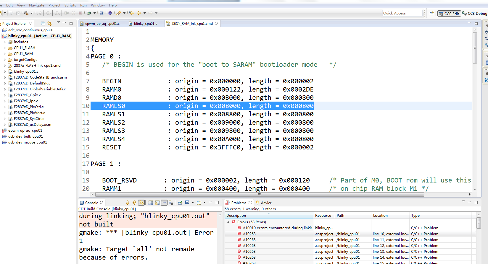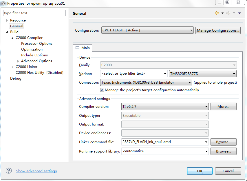 你打开的例程本身已经有cmd文件了,是在属性配置的C2000 Linner目录下,你工程文件里面的flash.CMD是重复会报错的。把两个cmd删掉其中一个就可以了