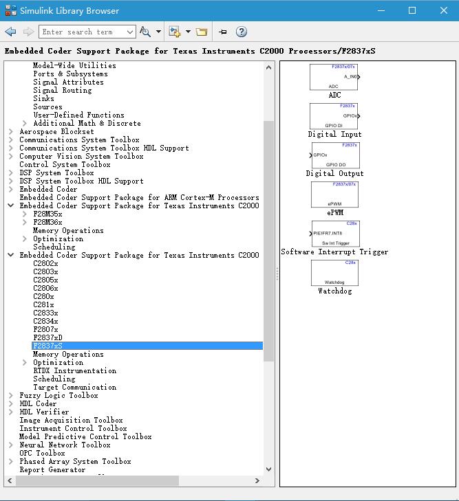 看到Simulink(MATLAB 2015b)中有个C2000嵌入式代码的支持包,安装后发现没有F28335的模块库,