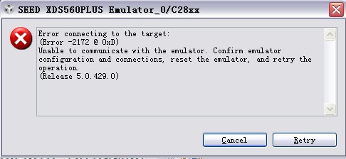 我用的软件是ccs4.2.4,芯片是TMS320F28335,当我在连接目标板时总是出现下面这个问题,希望得到您的帮助,非常感谢!