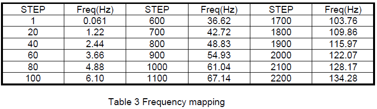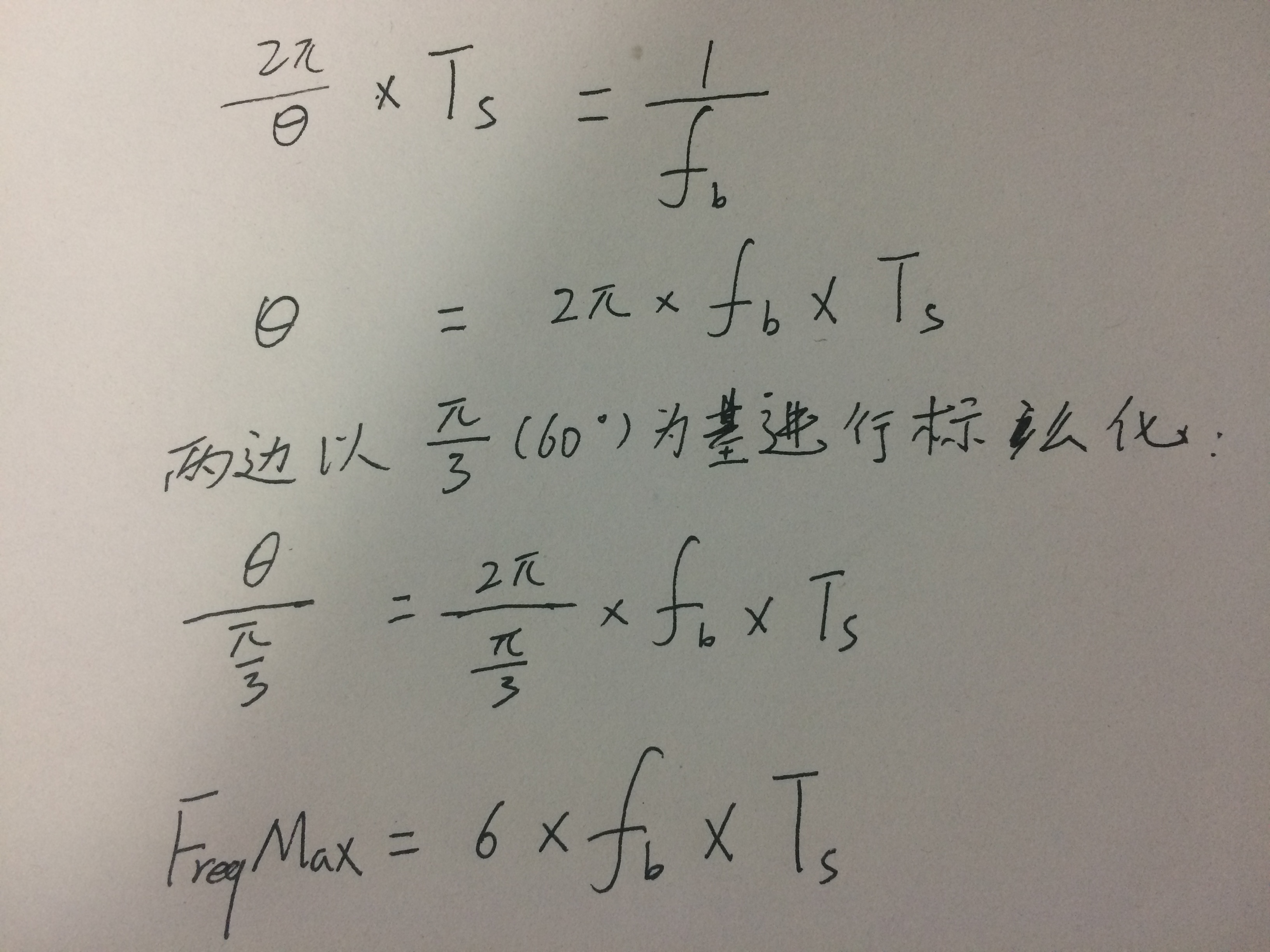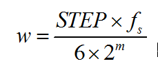 上面的公式中对于各个量的描述是这样的:Where fs = sampling frequency (i.e. PWM frequency), STEP = angle stepping increment,and m = # bits in the integration register.
