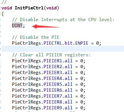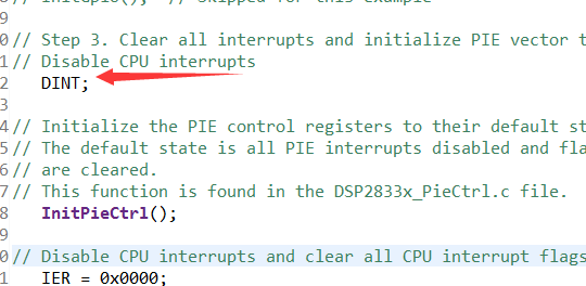 在TI提供的例程中,初始化中断的时候先写了一个DINT,然后在后面的InitPieCtrl()函数中也有一个DINT,这两个DINT有什么区别吗?如果作用相同,第一个DINT可以省略吗?
