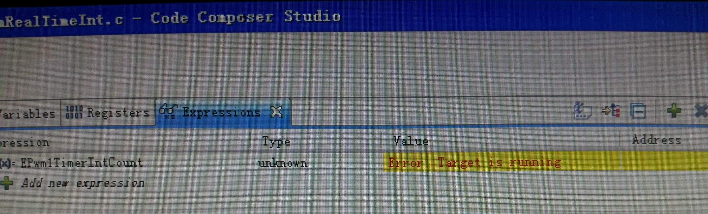 我用CCS5 .4观察变量数据出错,本来可以的,不知动了哪里,一运行就出现图示的状态。但是点击暂停又可以看到数据。不知道怎么解决!
